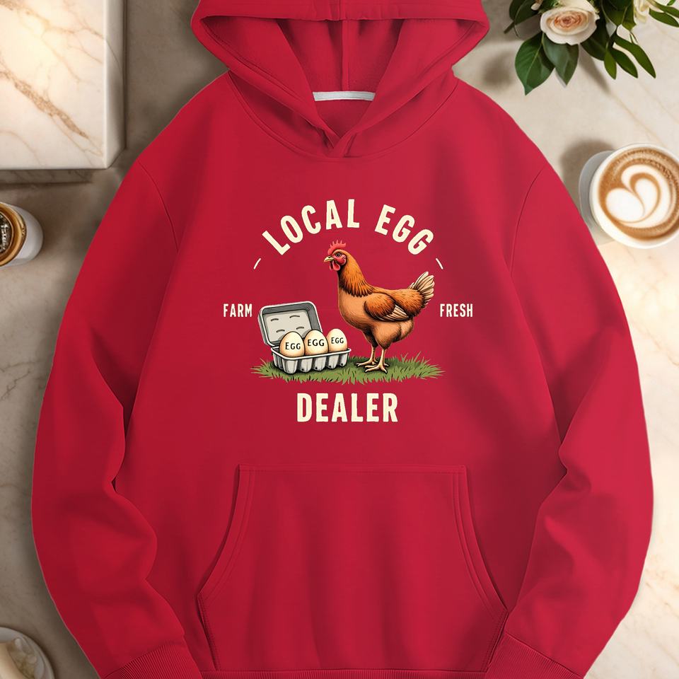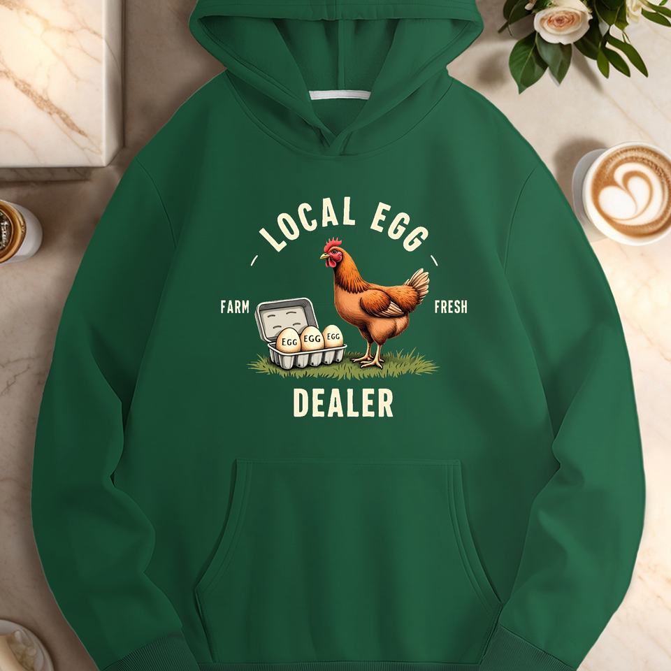 Poulet brun avec oeufs Sweats à capuche imprimés tricotés décontractés pour femmes