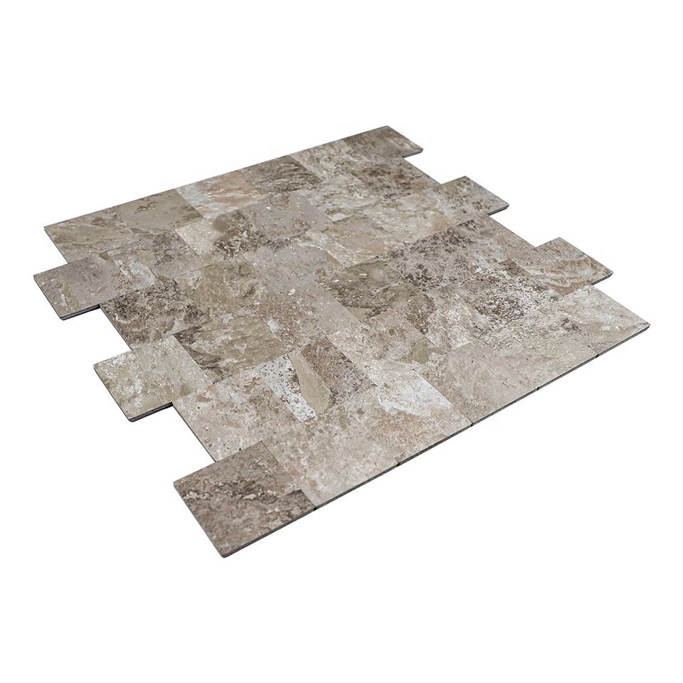 Carreau de mosaïque en marbre de peler et de coller de conception de pierre simulée de couleur brune pour dosseret de cuisine