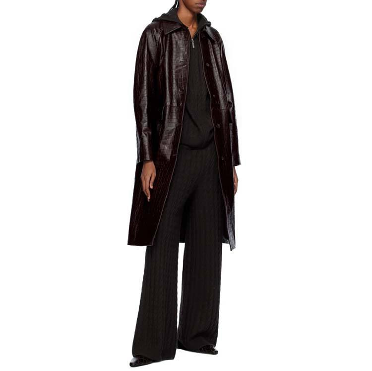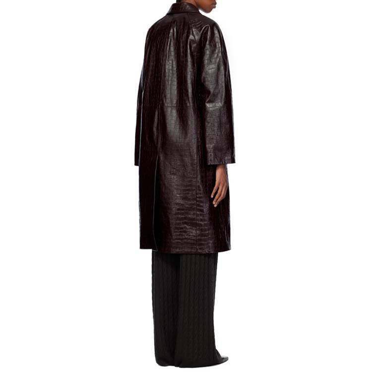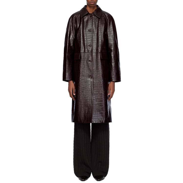 Manteau en cuir gaufré croco marron dernier design de mode manteau en cuir poli gaufré croco de haute qualité pour les femmes