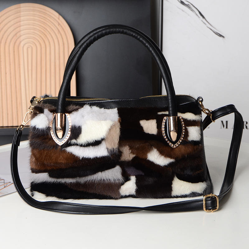 Brown Fashion Real Mink Fur Luxury Women Handbag Evening Bags