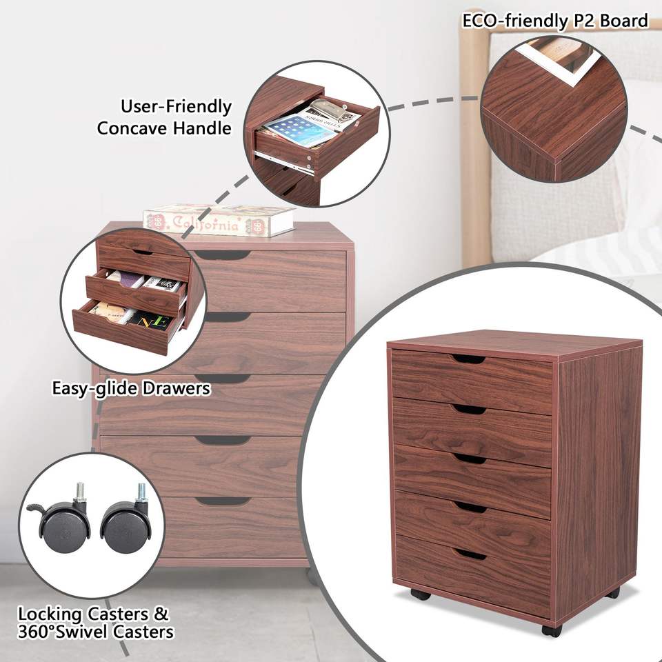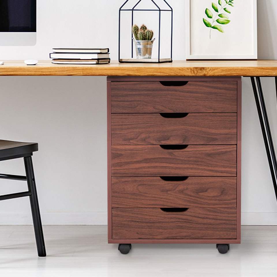 Armoire à dossiers en bois MDF et PVC marron à cinq tiroirs