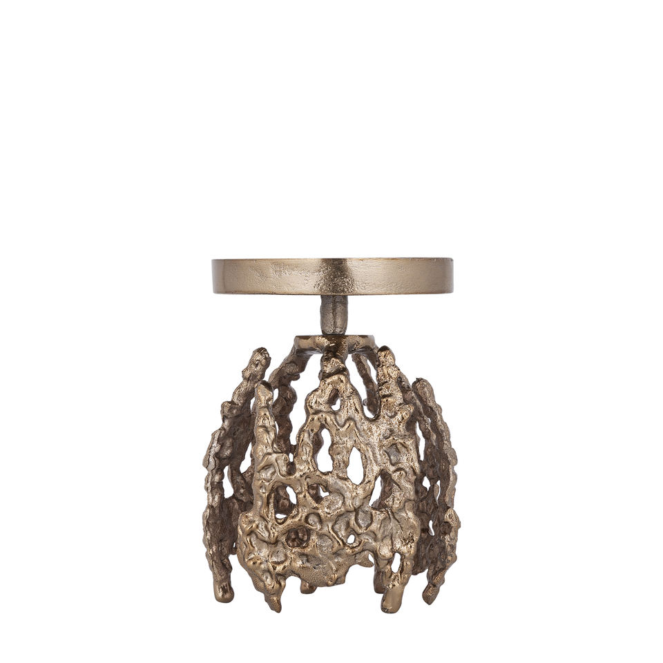 Bougeoir rond en métal brut doré élégant et tendance pour les décorations de Noël à la maison