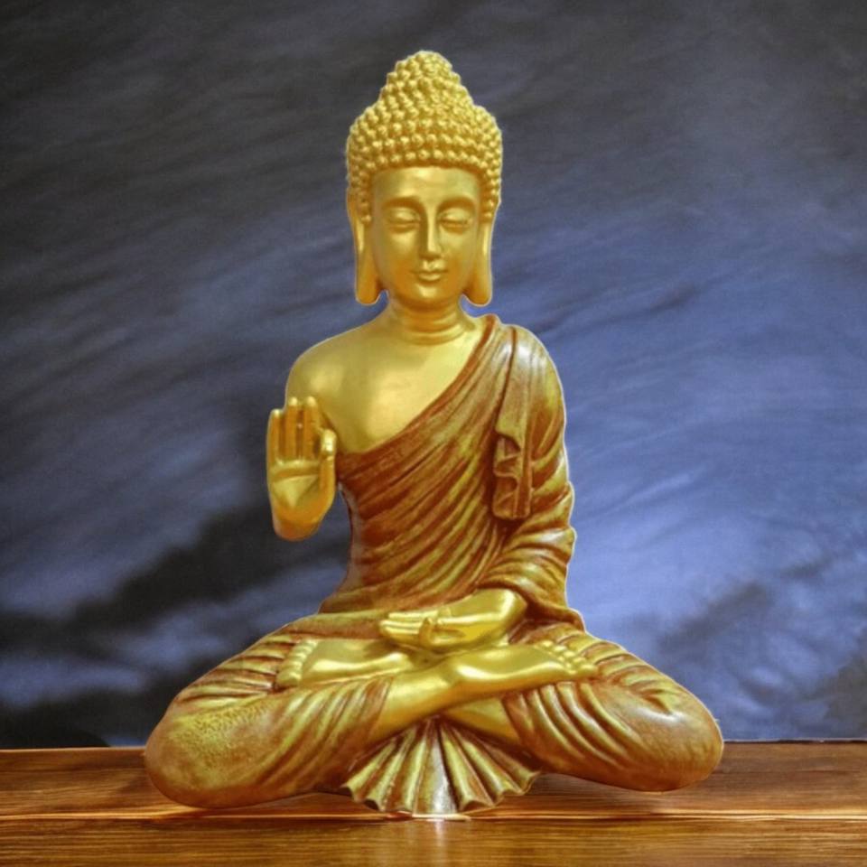 Brown & Golden Resin Crafts Meditating Buddha Statue Stylish Buddhism-Inspired Statue