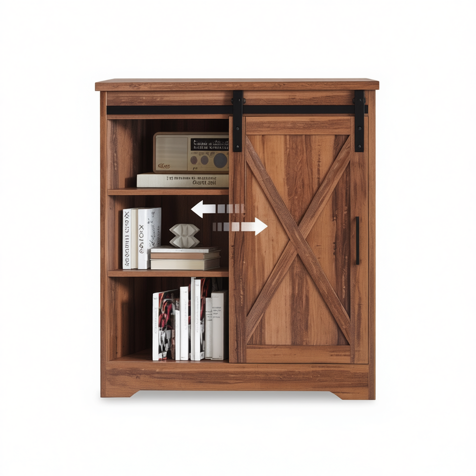 Buffet de cuisine brun avec rangement, porte en panneau de bois massif, design moderne