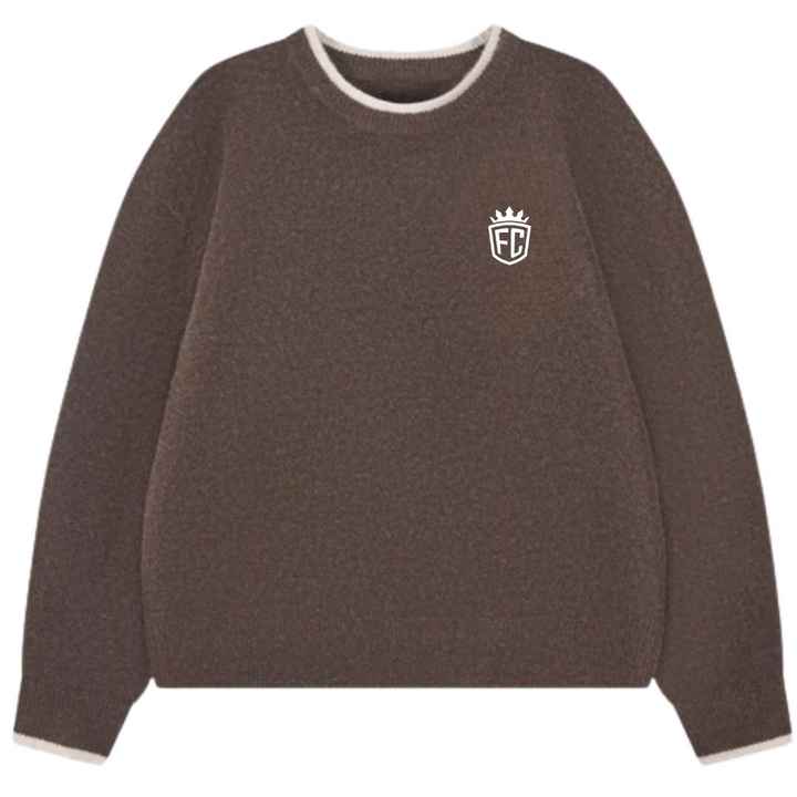 Pull en maille marron à col rond avec bordure contrastée, doux, confortable, ajusté, léger, pour un usage décontracté