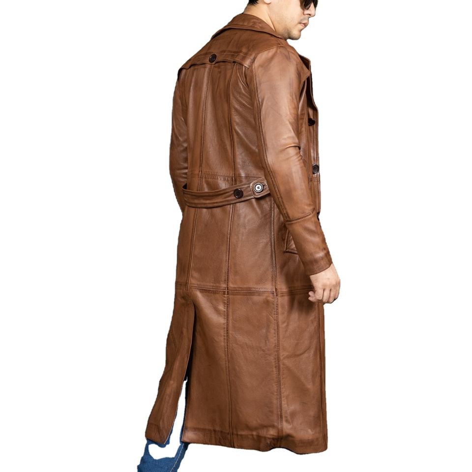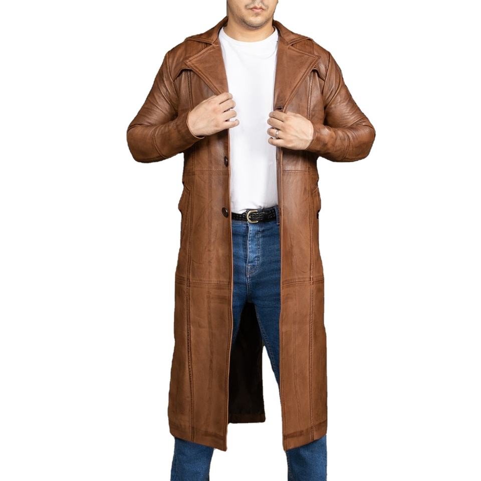 Veste matelassée pour homme en cuir marron, style streetwear, col montant, personnalisable avec des motifs artisanaux sur mesure
