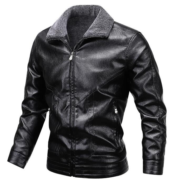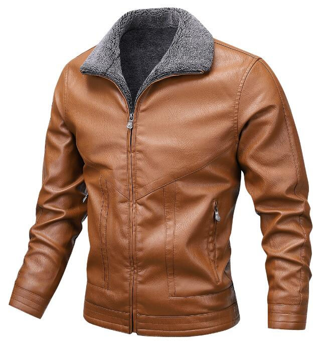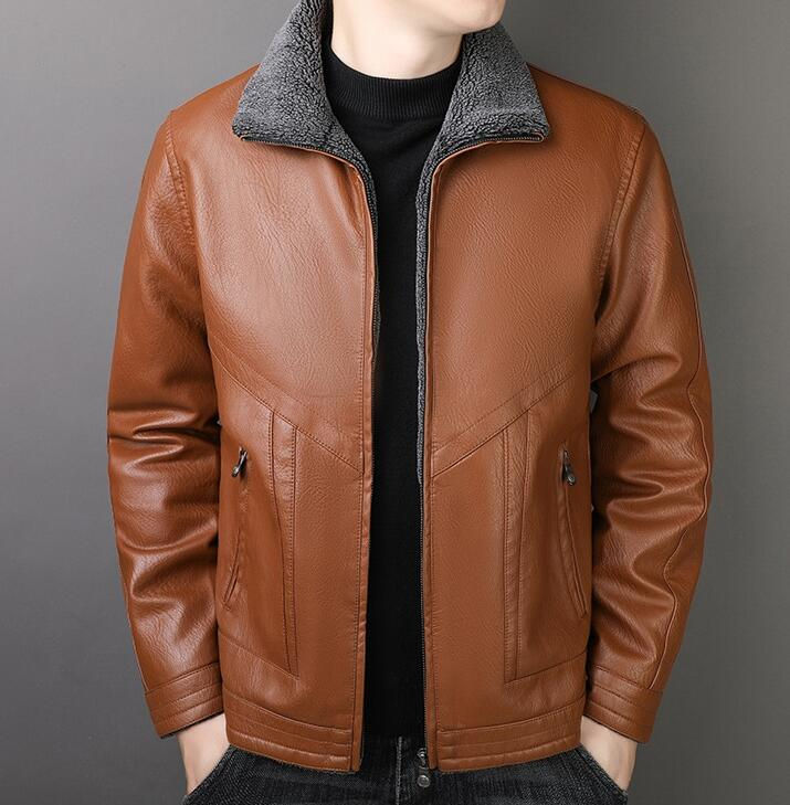 Brown Leather Jacket Men Unisex Winter with Polyester Lining Crew Neck Waterproof Eco-Friendly Canvas Fabric