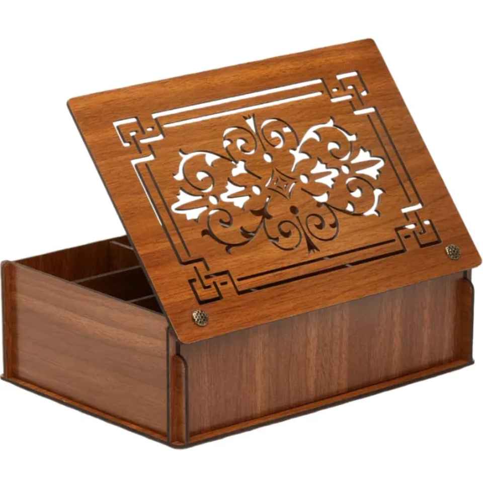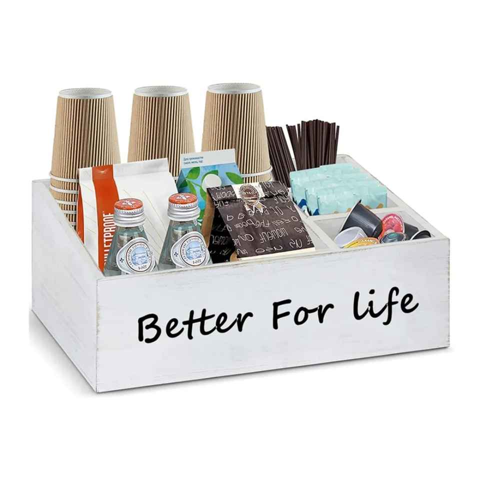 Boîte de rangement à thé en cuir marron avec compartiments, organiseur de pots en verre, accessoire élégant pour comptoir de cuisine pour feuilles de thé