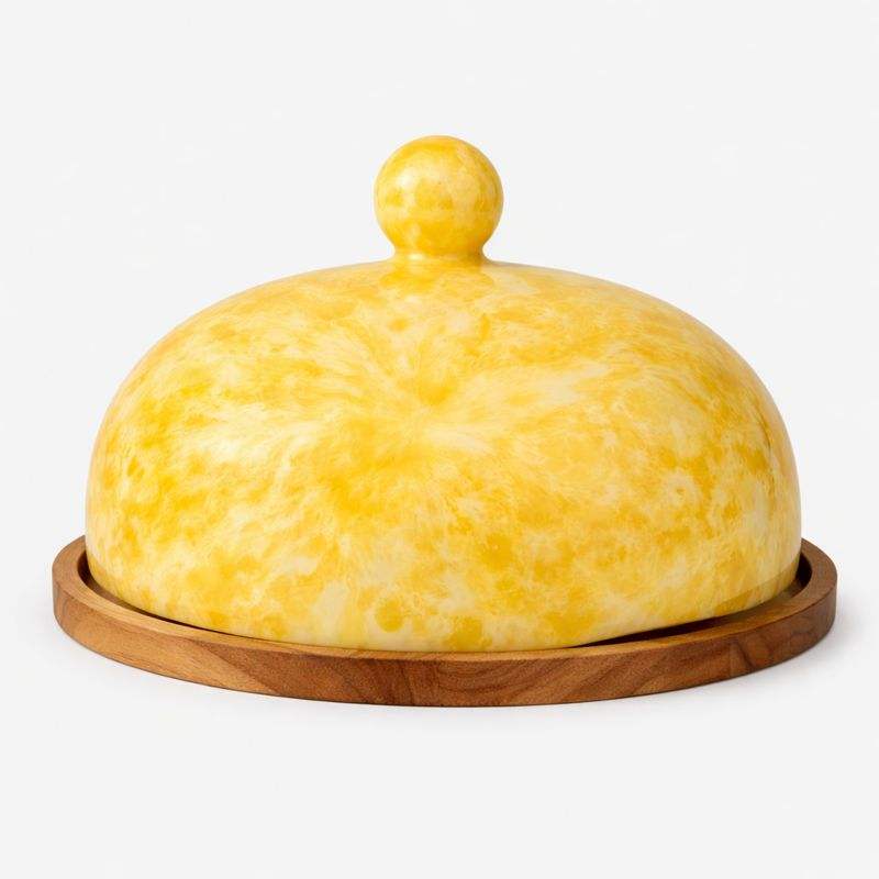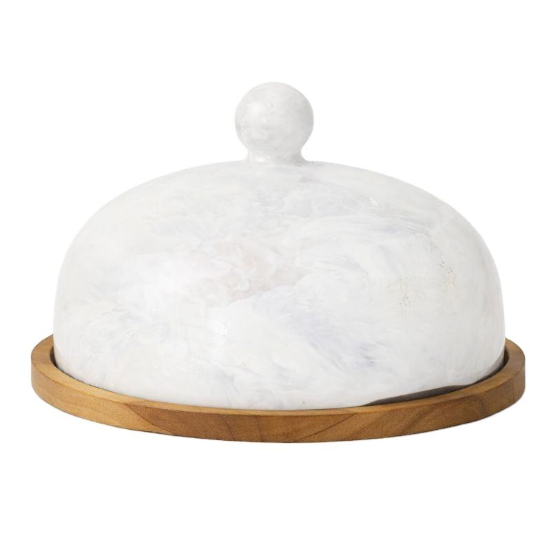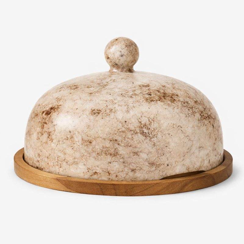Dôme à beurre en résine effet marbre brun, couvercle de cloche à fromage avec plateau en bois, dôme de service rustique pour la cuisine, rangement alimentaire