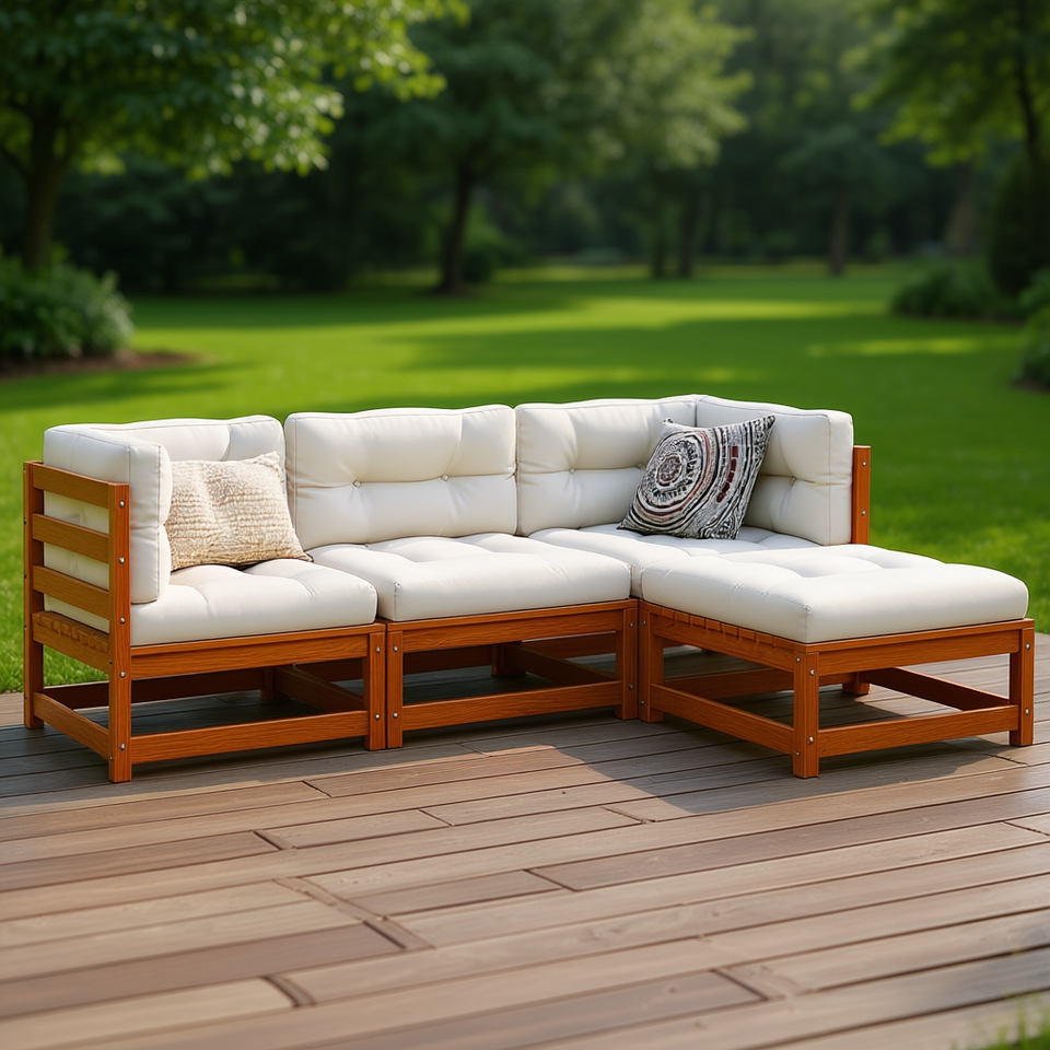 Ensemble de canapés de jardin modulaires marron en bois de pin massif, mobilier d'extérieur durable et élégant avec coussins en mousse haute densité