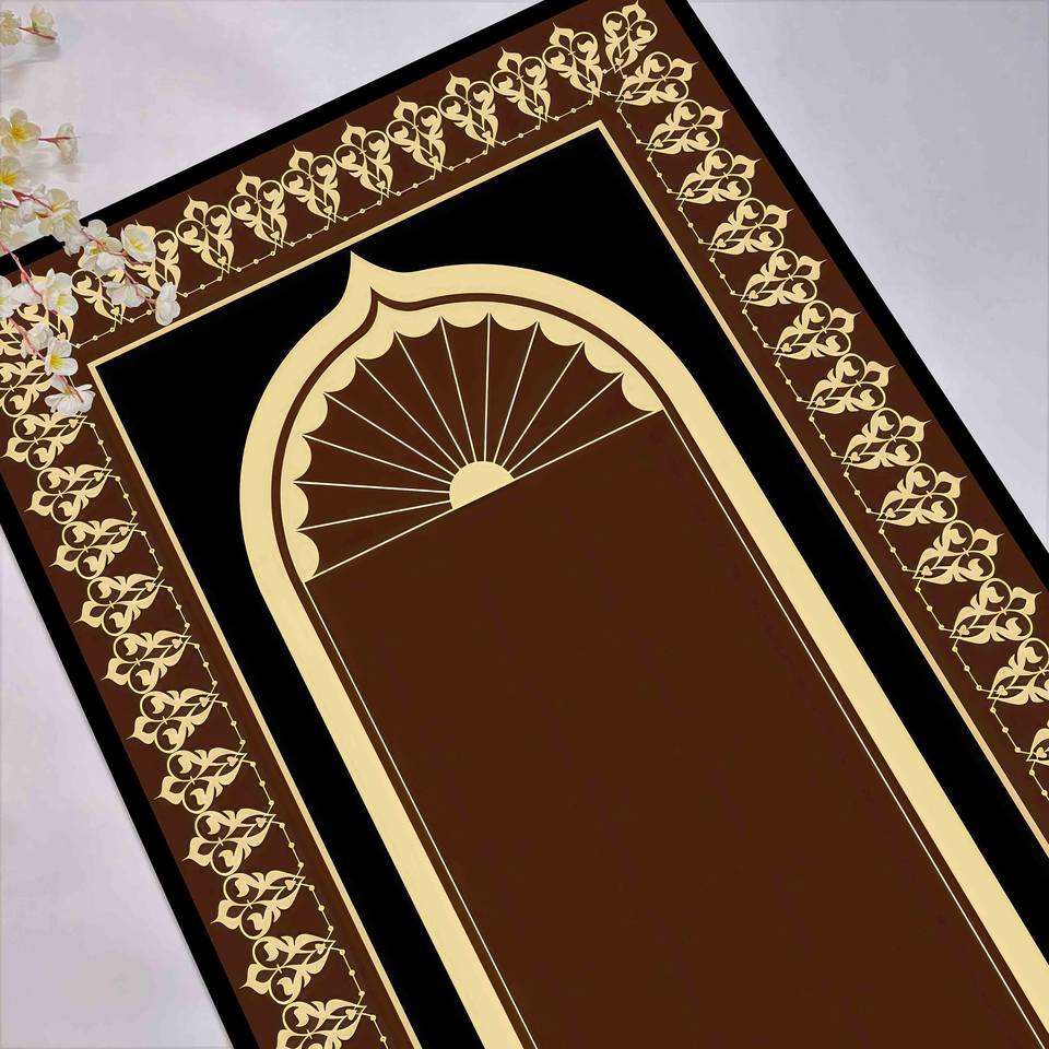 Tapis de prière musulman marron : cadeau religieux imprimé en 3D, avec tapis moelleux à poils longs
