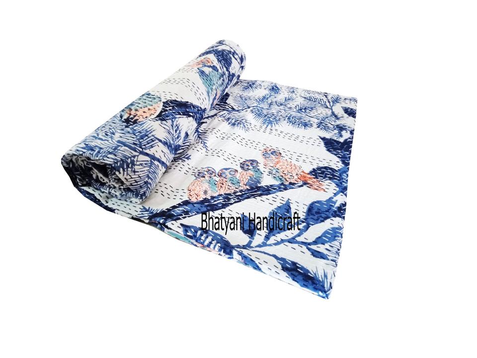 Brun hibou Kantha couette à la main réversible coton couverture haute bio couvre-lit canapé couverture imprimé couette lit décoratif