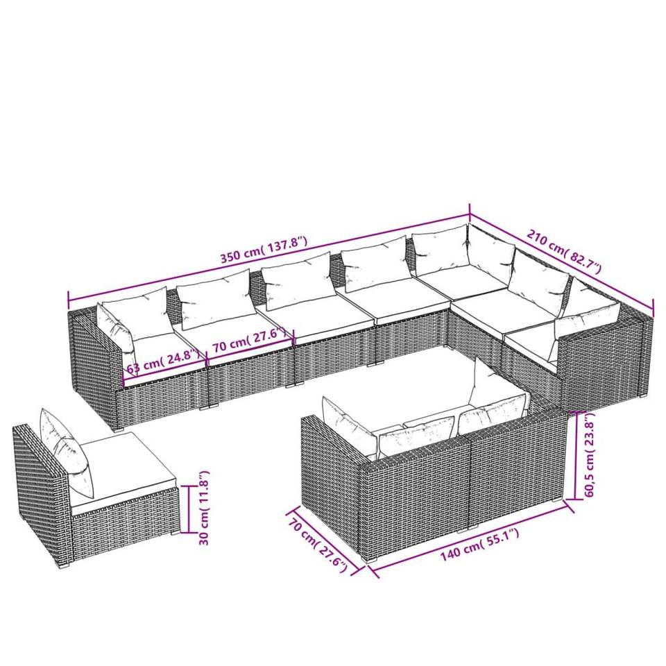 Ensemble de salon de jardin en rotin PE brun avec structure en acier thermolaqué pour espaces extérieurs