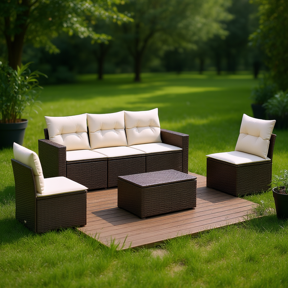Ensemble de canapés de jardin en rotin brun, mobilier d'extérieur, pieds réglables, confortable et élégant, 5 pièces