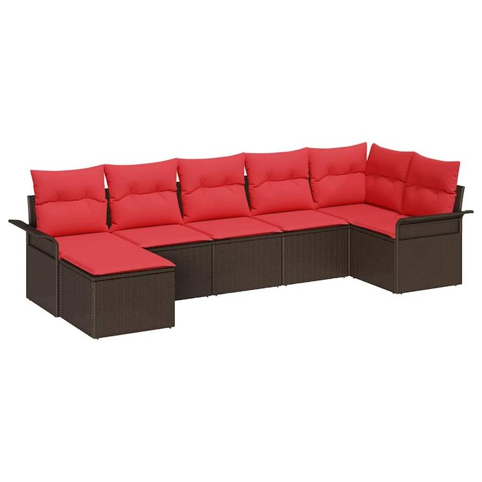 Ensemble de canapés de jardin en polyrotin marron avec coussins, collection de meubles d'extérieur élégante