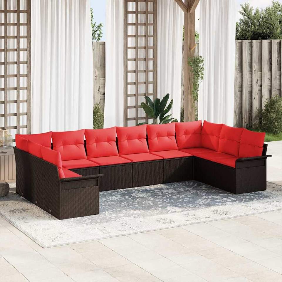 Ensemble de canapés de jardin en polyrotin marron avec coussins, 10 pièces, meubles d'extérieur confortables