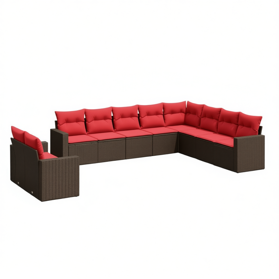Ensemble de canapés de patio en polyrotin marron avec coussins, 10 pièces, mobilier de jardin extérieur, design contemporain, structure en osier