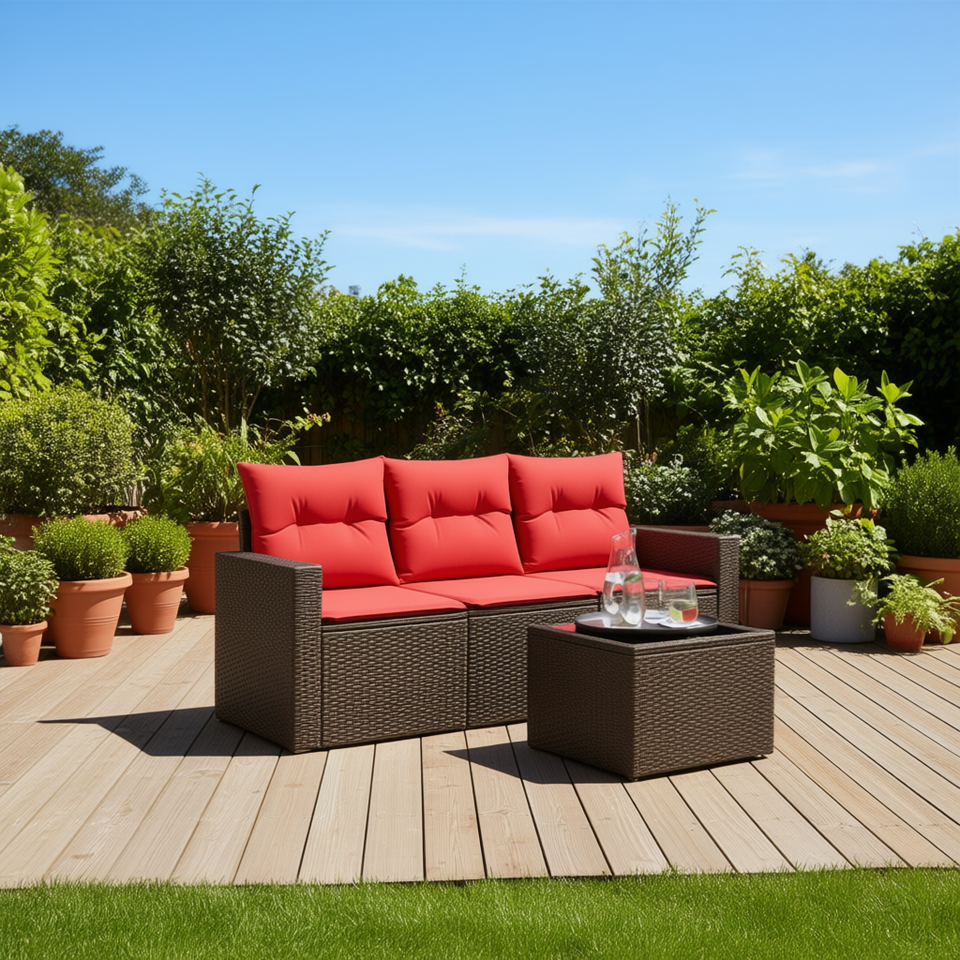 Ensemble de canapés de patio en polyrotin marron avec coussins, sièges pour 4 personnes, meubles d'extérieur contemporains