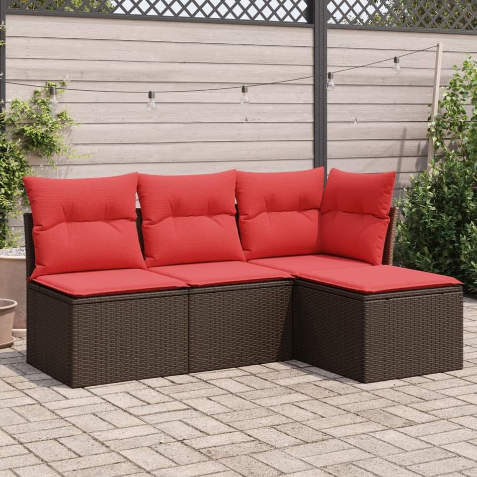 Ensemble de canapés de patio en polyrotin marron avec coussins, pour 4 personnes, mobilier d'extérieur au design contemporain