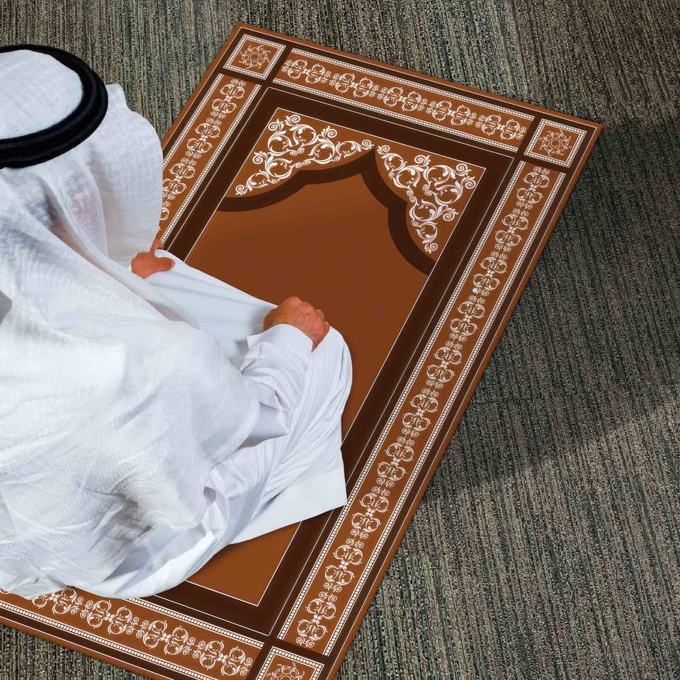 Tapis de prière brun : design islamique, décoration de mosquée, tapis imprimé, tapis à poils doux