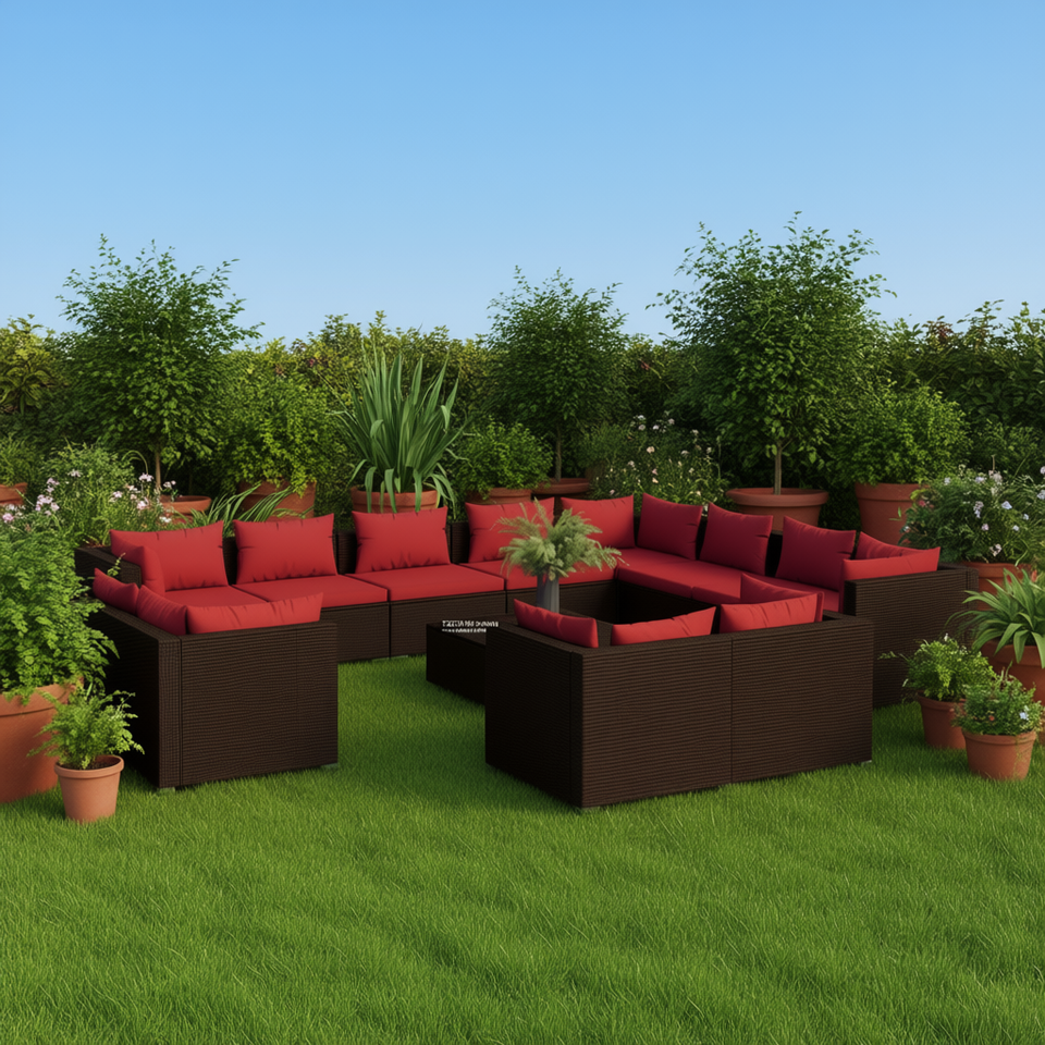 Ensemble de salon de jardin en rotin brun, 10+ places, mobilier d'extérieur contemporain, résistant aux intempéries