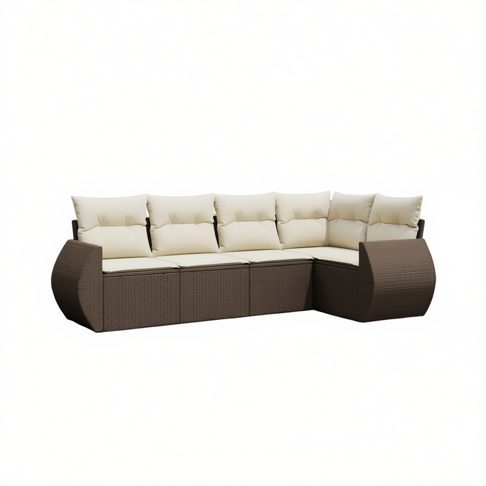Ensemble de canapés de jardin en rotin brun avec coussins crème, mobilier d'extérieur au design contemporain, résistant à l'eau et aux UV, en rotin PE