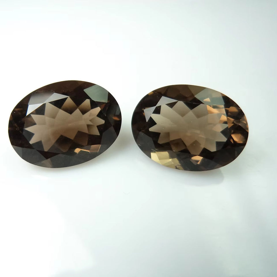 Quartz fumé brun forme ovale taille calibrée personnalisée coupe à facettes de qualité supérieure en vrac naturel Quartz fumé pierre précieuse en gros OEM