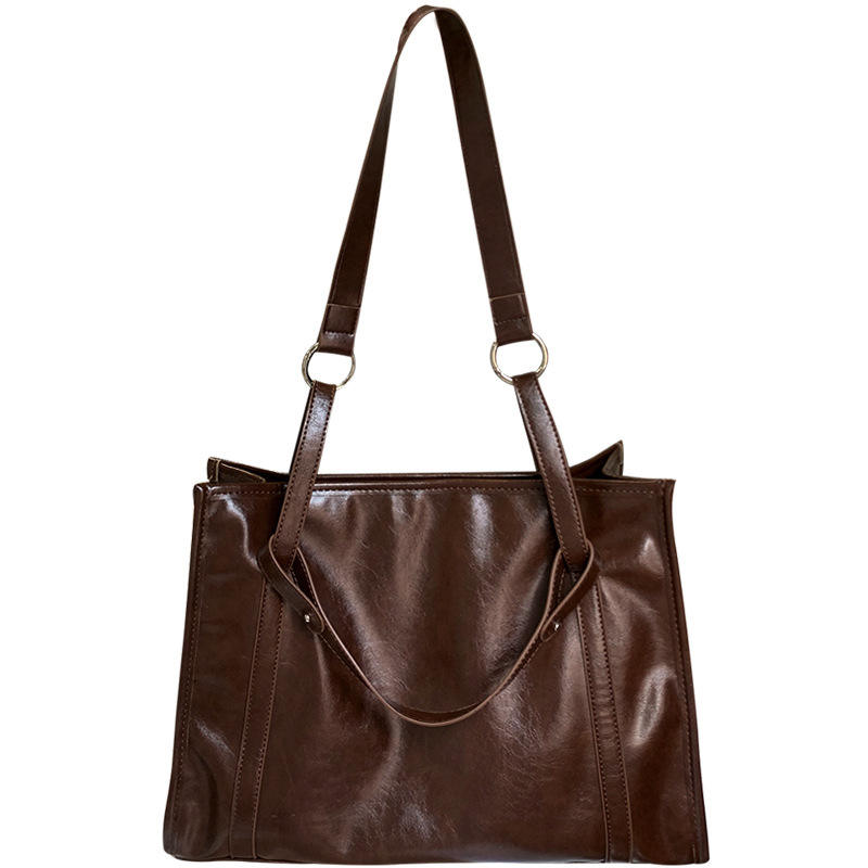 Sac fourre-tout marron uni, moyen, fermeture éclair souple, usage quotidien, sac à main pour femme