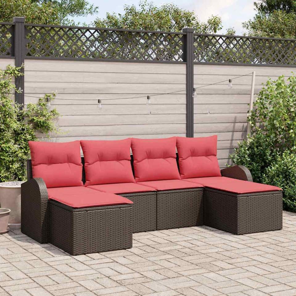 Ensemble de canapés de jardin en polyrotin synthétique brun avec coussins, mobilier d'extérieur au design contemporain