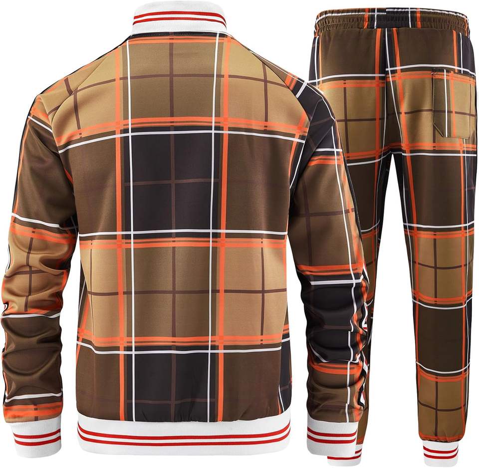 Brown Track Suits for Men Set Plaid Tracksuit Mens Sweatsuits 2 Piece Sport Jogger Sweat Suits Clothes Jogging Outfits