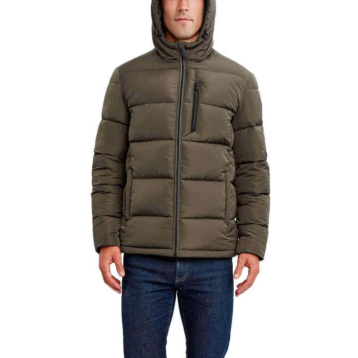 Veste matelassée d'automne pour homme en toile imperméable et écologique, à capuche, isolée, rembourrée, fermeture éclair, logo sur le devant, style urbain