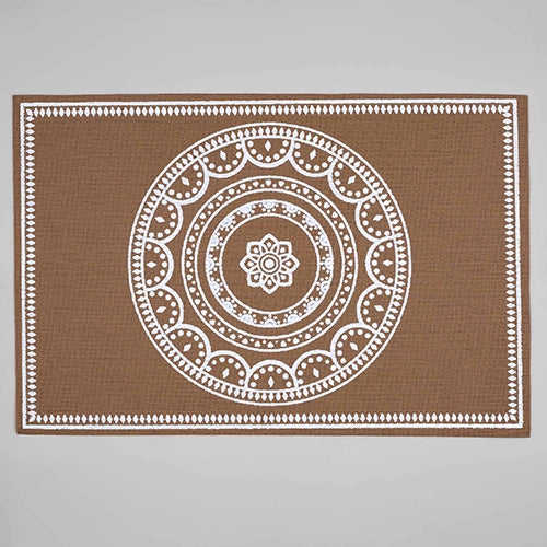 Napperon rectangulaire en PVC marron et blanc, design bohème, écologique, avec sous-verres chauffants, polyvalent et facile d'entretien pour la maison