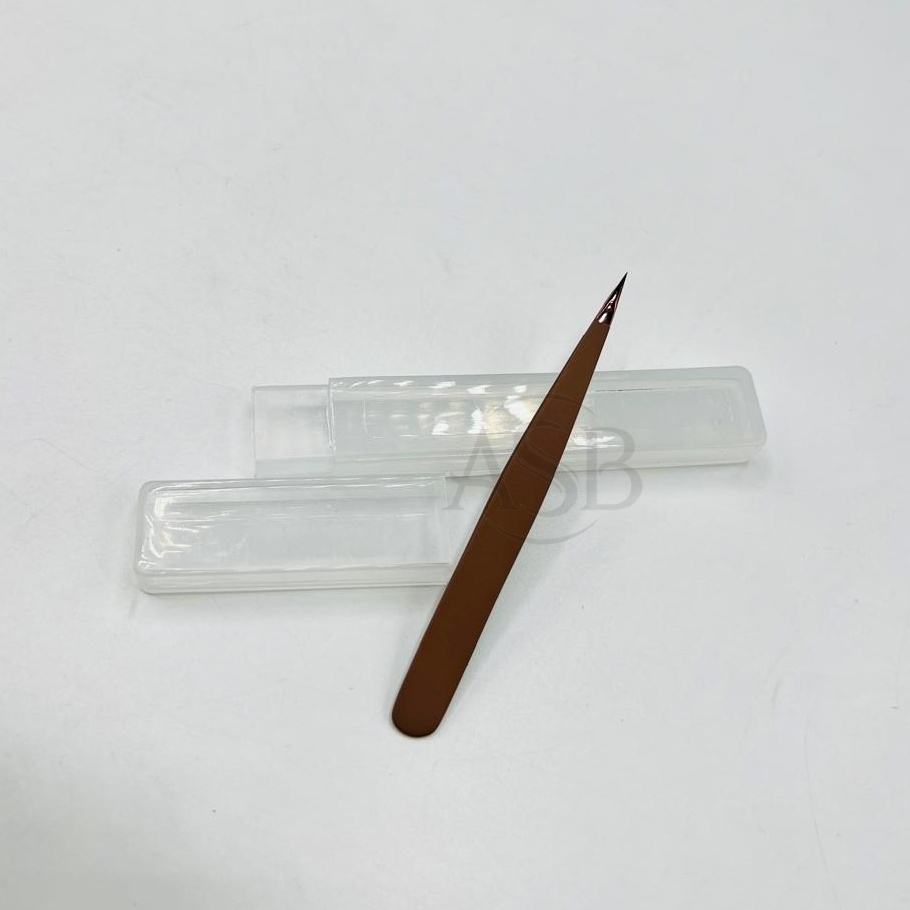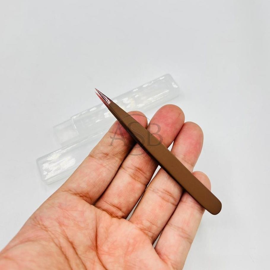 Pince à épiler à sourcils marron avec pointe pointue en or rose Logo personnalisé Pince à épiler à sourcils en acier durable