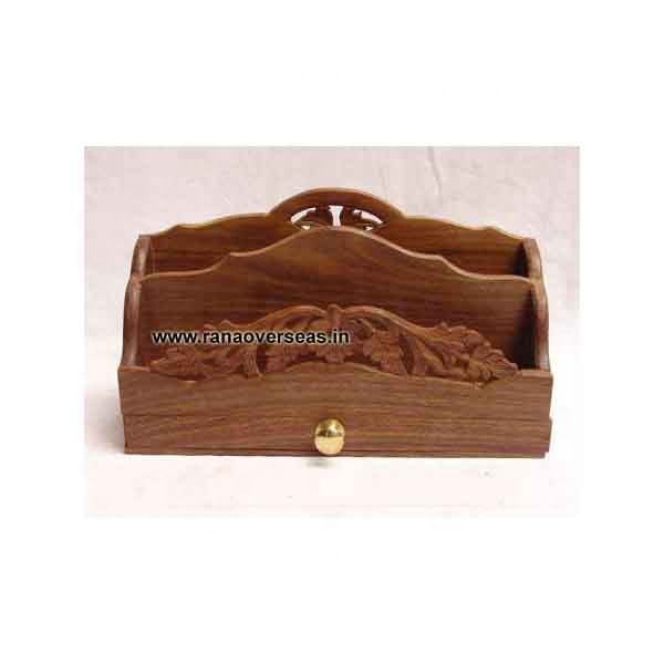Étagère à lettres en bois brun massif, organisateur de bureau avec 2 Design auto-sculpté pour le salon