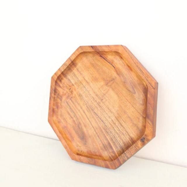 Brown Wooden Serving Tray Octagon Shaped Acacia Wood Plate Rustic Decorative Platter for Appetizers Fruits Snacks or Drinks