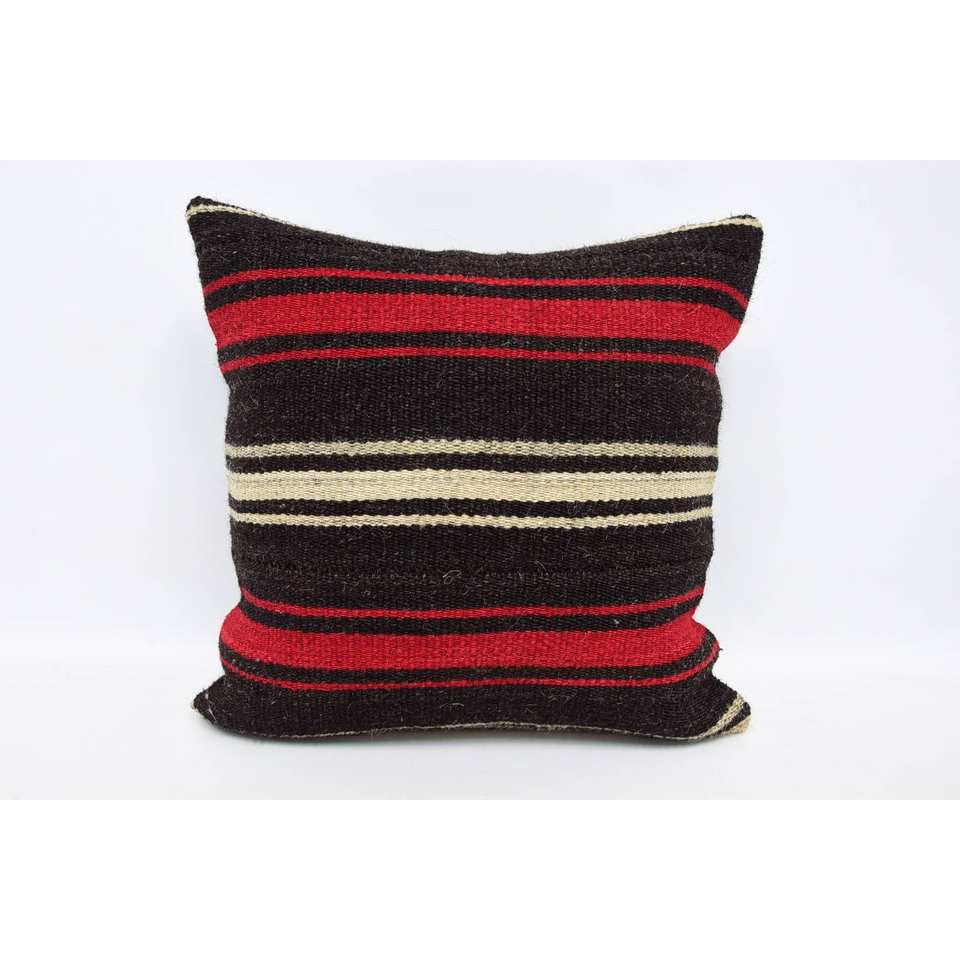 Coussin Patchwork Kilim en laine marron 16x16 pouces oreiller d'accent décoratif Vintage imprimé fleuri tissé literie sol Portable