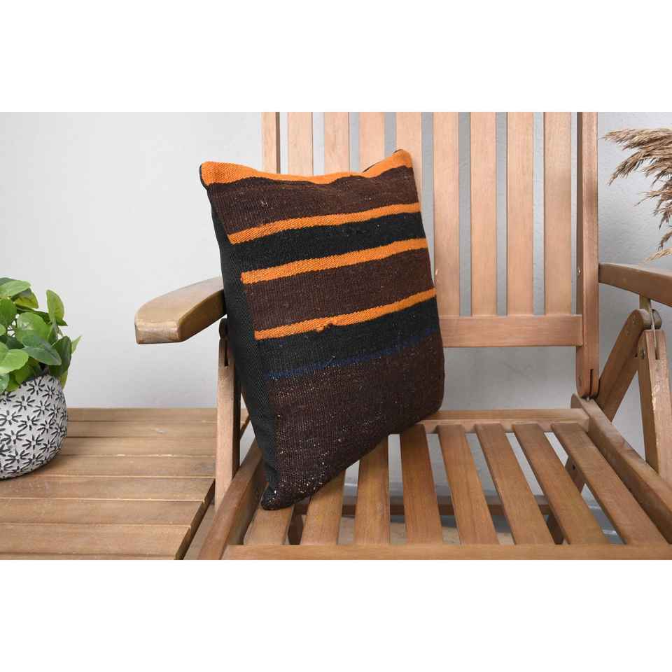 Oreiller Patchwork Kilim en laine marron 16x16 pouces Design rustique de luxe Vintage moelleux imprimé motifs floraux soie tissée pour la literie
