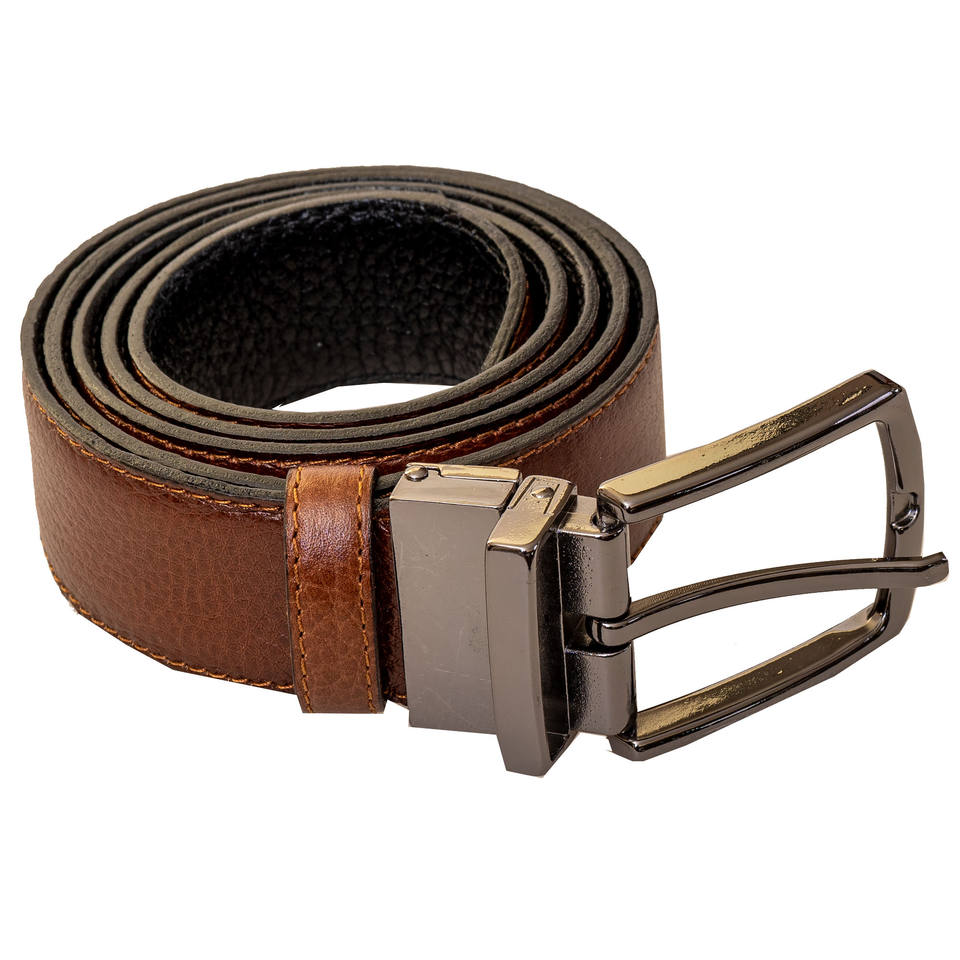 Ceintures jumelles 2 en 1 en cuir véritable du Pakistan à boucle en acier inoxydable à double face marron et noir