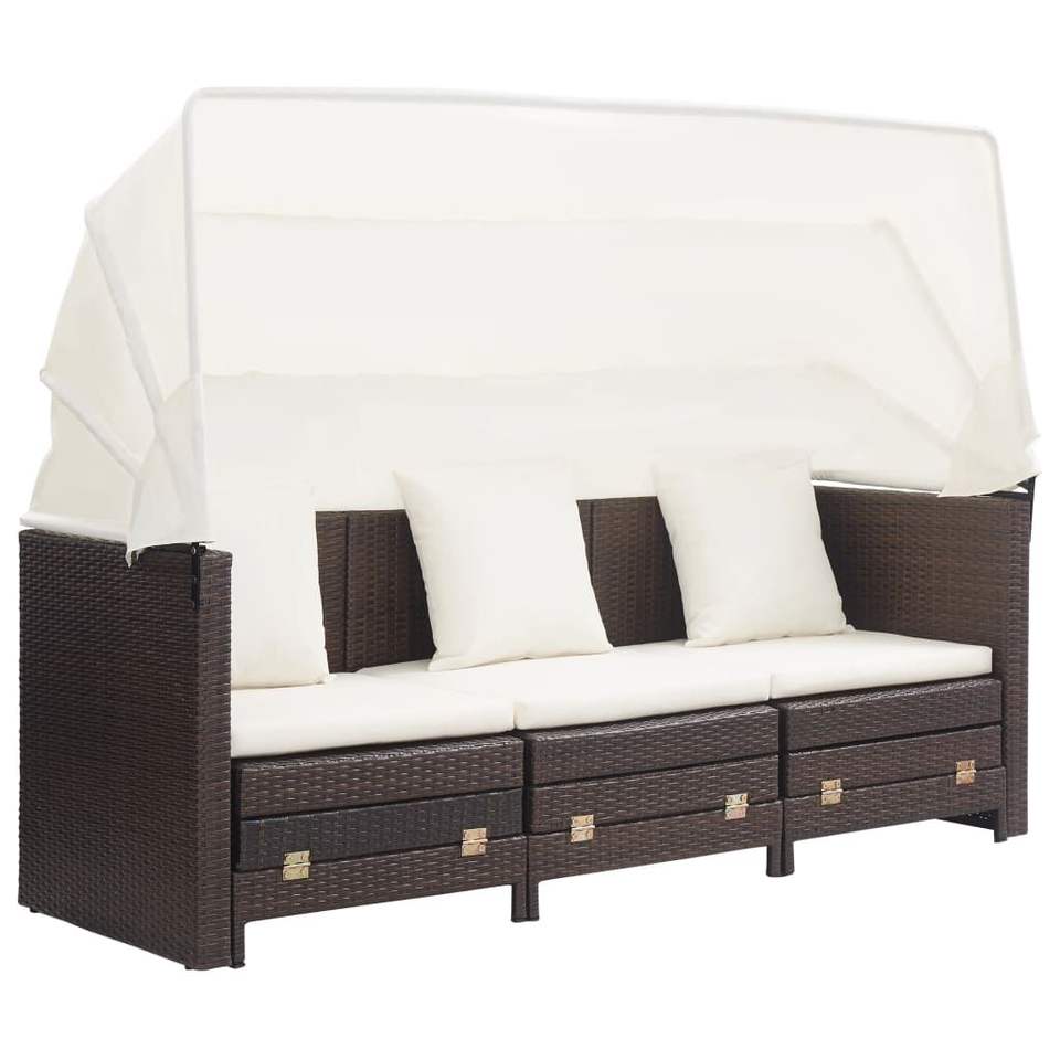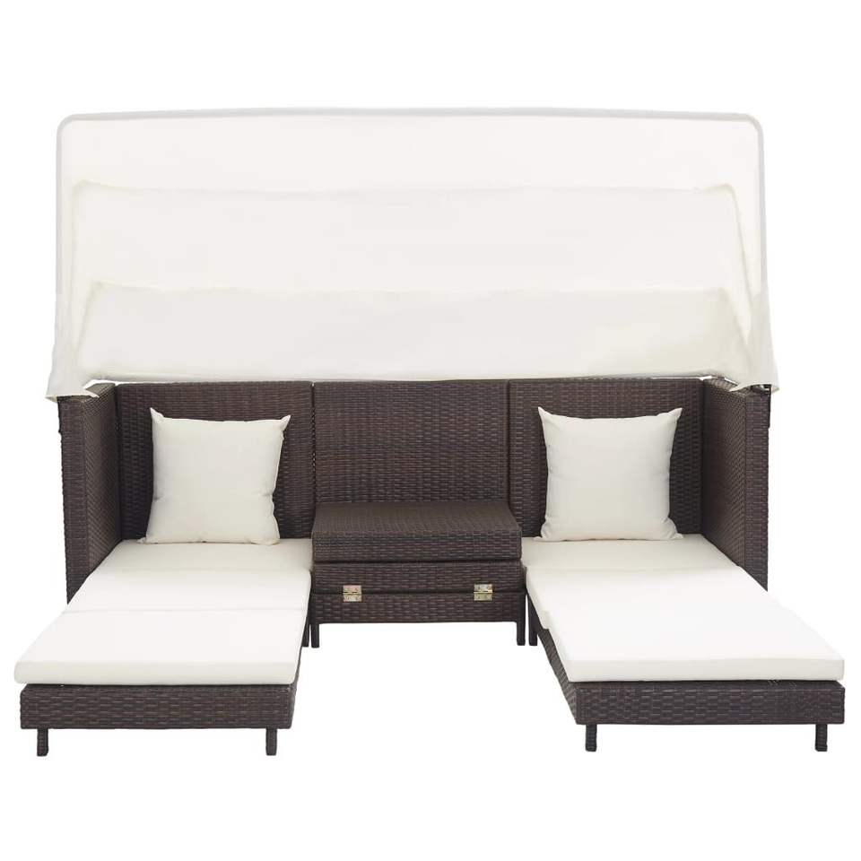 Canapé-lit de jardin en rotin PE brun avec auvent, structure en acier thermolaqué, ensemble de meubles d'extérieur au design contemporain