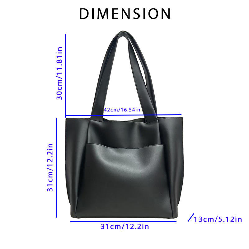 Sac fourre-tout grande capacité en cuir marron, style minimaliste, design multi-compartiments, épaule/sac à main pour femme.