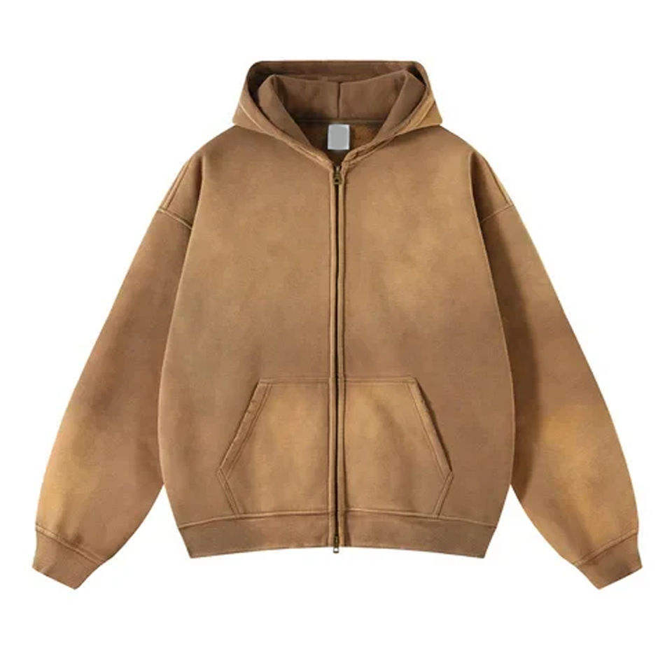 Brown oversized zip hoodie warm casual sweatshirt with front pockets soft fleece jacket for men and women daily wear