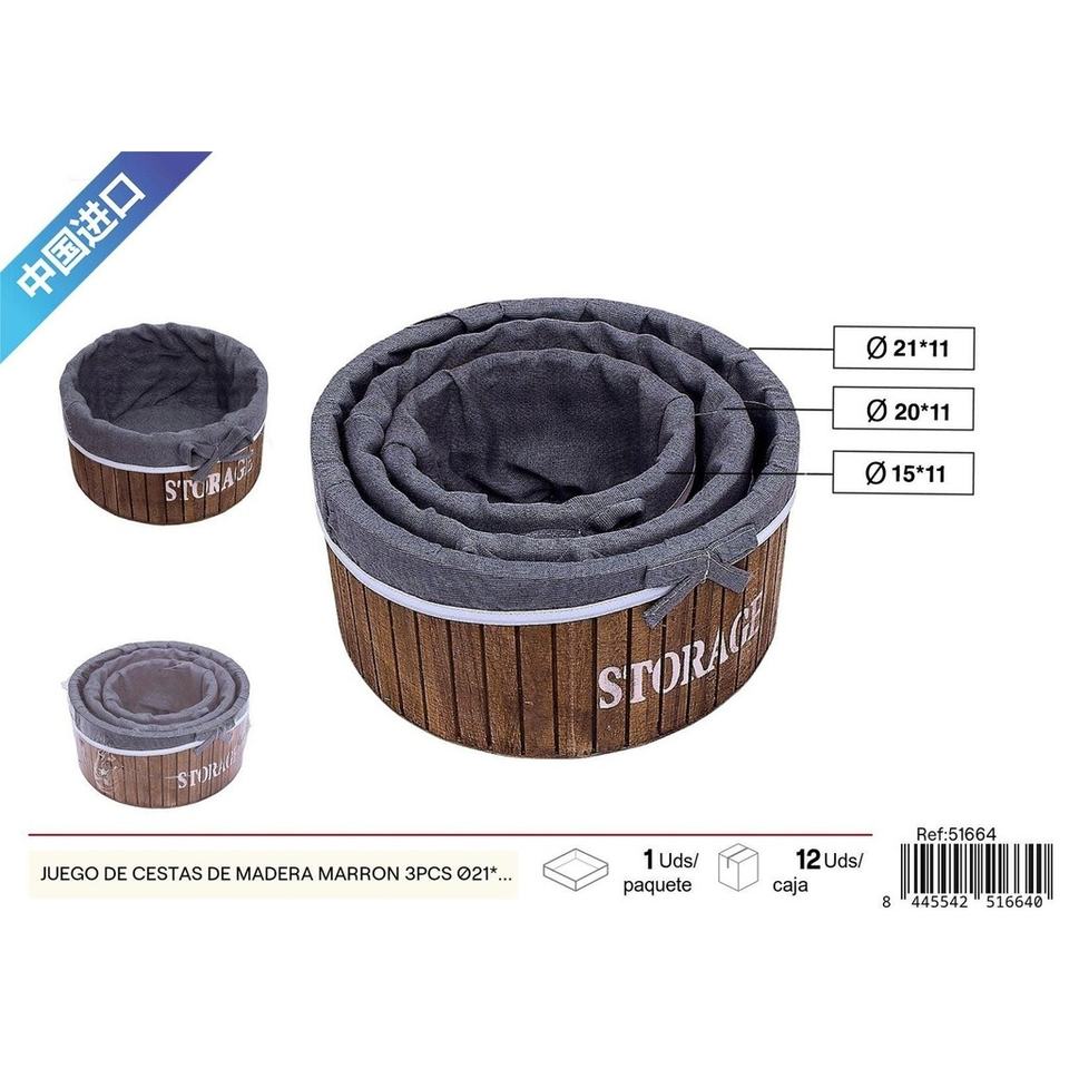Brown wooden basket set, 3 pieces, Ø21*11 cm - Home decor