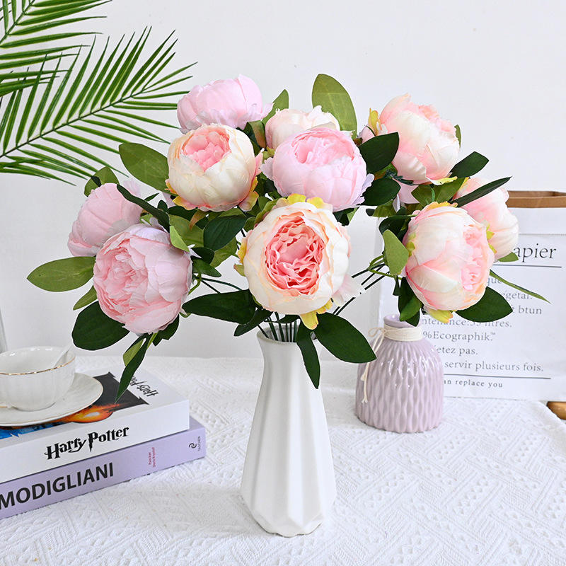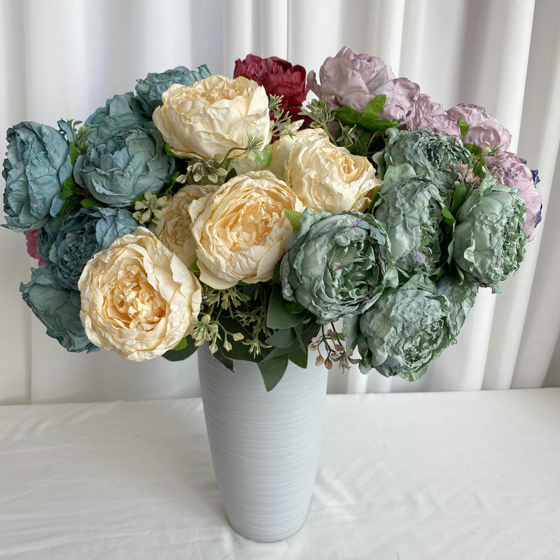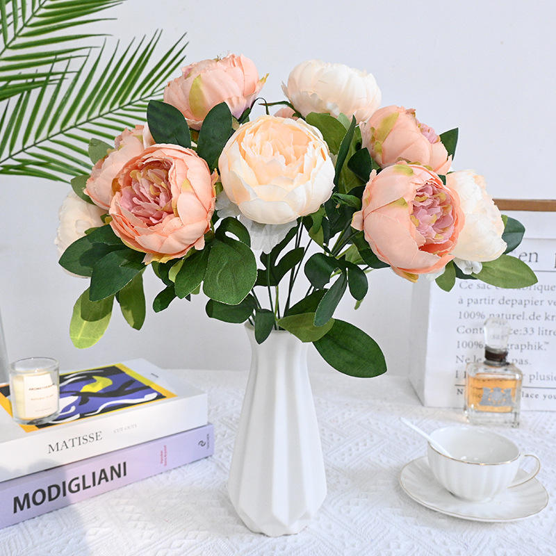 Tissu brossé 7 têtes bord brûlé pivoine INS pivoine nordique fleur artificielle intérieur Table fleur Art Simulation Bouquet ornements