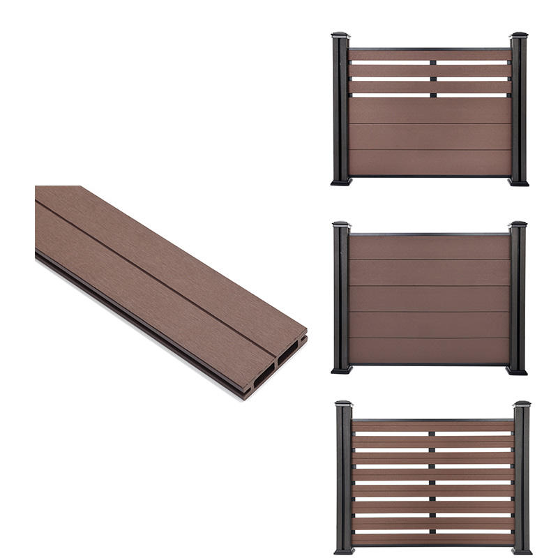 Panneaux et poteaux de clôture murale en WPC finition brossée couleur café clair avec cadre en alliage d'aluminium – Prix usine, durables pour usage extérieur