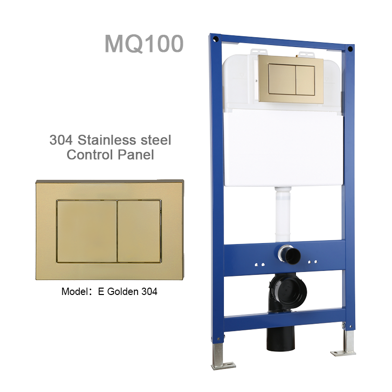 Plaque de chasse d'eau en or brossé Citerne dissimulée Toilette Salle de bain Montage mural Toilette Réservoir de chasse d'eau Bouton poussoir