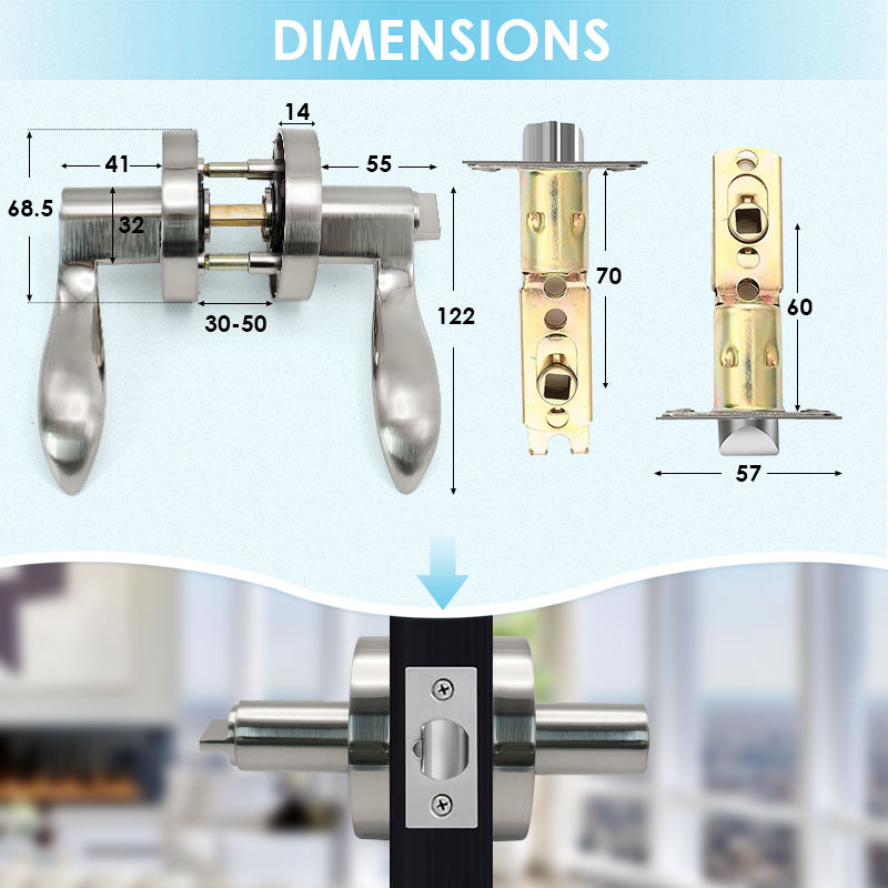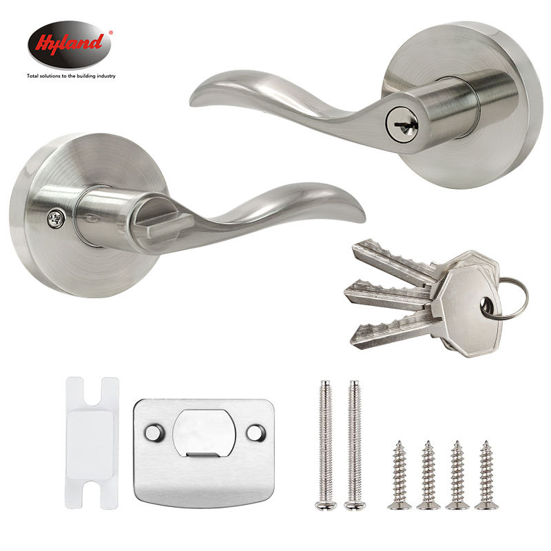 Serrure de porte tubulaire à levier robuste brossée avec clé HYLAND 8826 SNET, loquet réglable finition satinée, Cerraduras Para Puertas