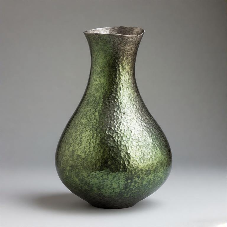 Vase vert texturé à crête de mousse brossée avec un vase en métal design d'appel antique Accent artisanal exquis pour la décoration intérieure