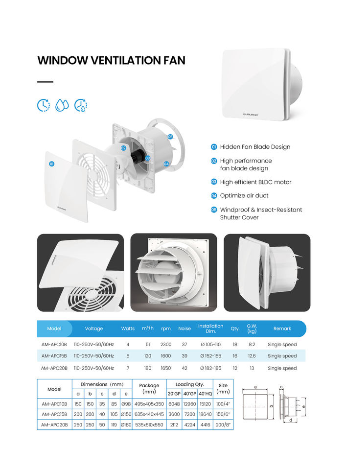Moteur à courant continu sans balais 4 "6" 8 "salle de bain chambre extracteur ventilateur d'extraction mur fenêtre ventilateur de Ventilation