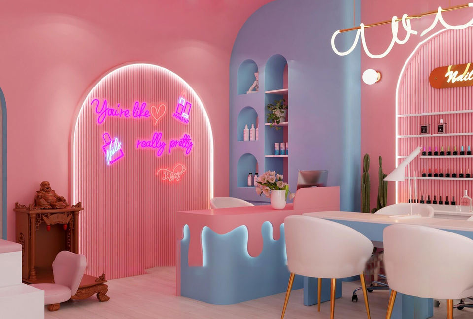 Brutallist Fancy Nail Salon Furniture Fashion Interior Design for Beauty Salons & Makeup Shops Display Nail Table & Showcases