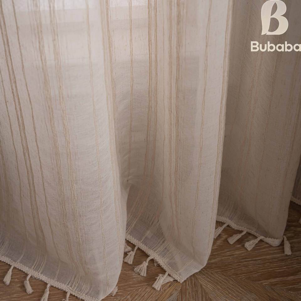 SélectionnerCouleur: A194-24 striped linen curtain beige tassel